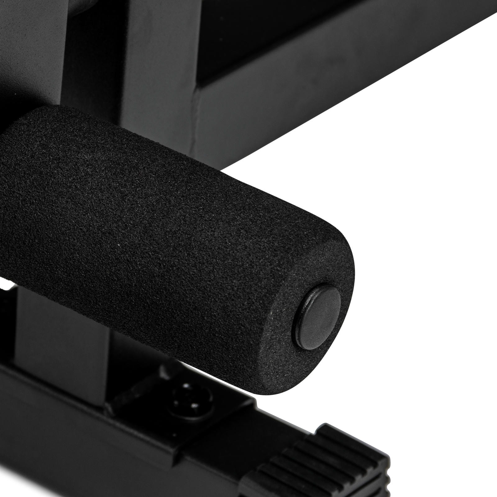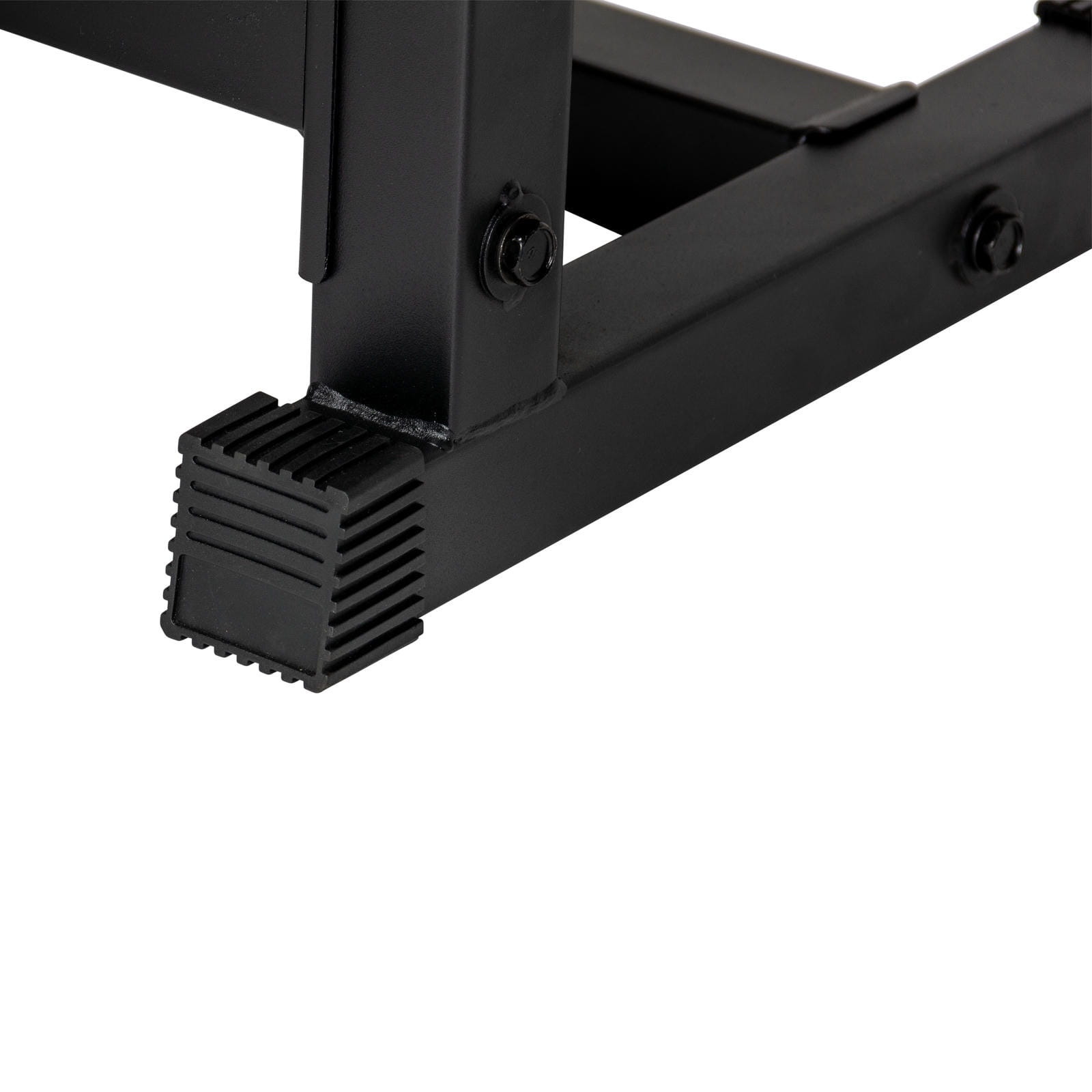 Stalowa rama malowana proszkowo gwarantuje trwałość i bezpieczeństwo użytkowania. Antypoślizgowe stopki zabezpieczają podłogę i zapobiegają przesuwaniu się sprzętu podczas ćwiczeń. Ławka ma maksymalne obciążenie 250 kg, co pozwala na intensywne treningi z dużym ciężarem. Stabilna podstawa i wzmocnione spawy sprawiają, że konstrukcja jest przystosowana do regularnego, wymagającego użytkowania.