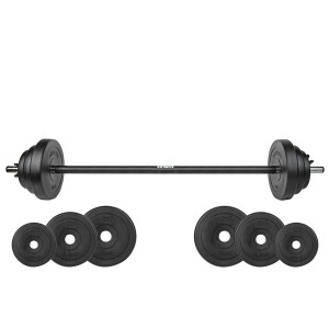Zawartość: sztanga + talerze: 2 x 1,25 kg, 2 x 2,5 kg, 2 x 5 kg